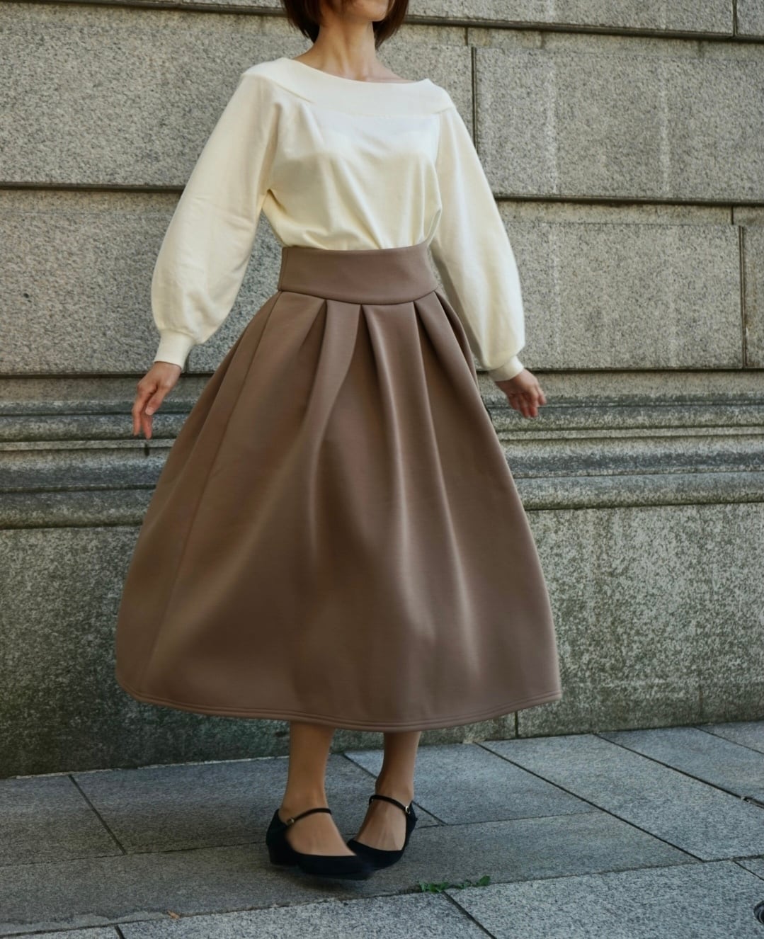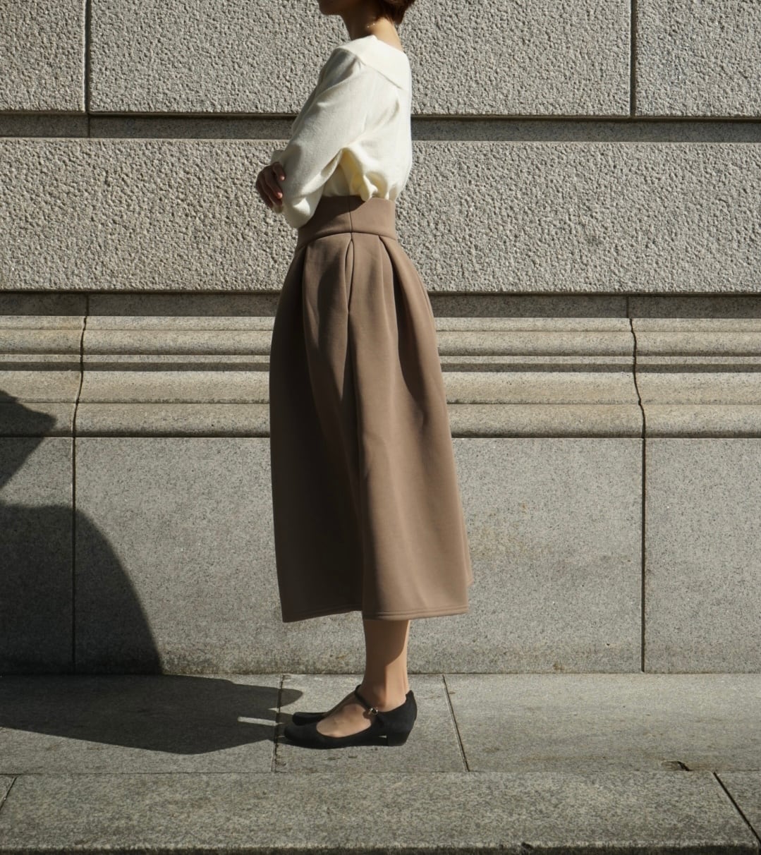 ふんわりしたシルエットなのでシンプルなトップスと合わせるだけで上品なスタイルに仕上がります。