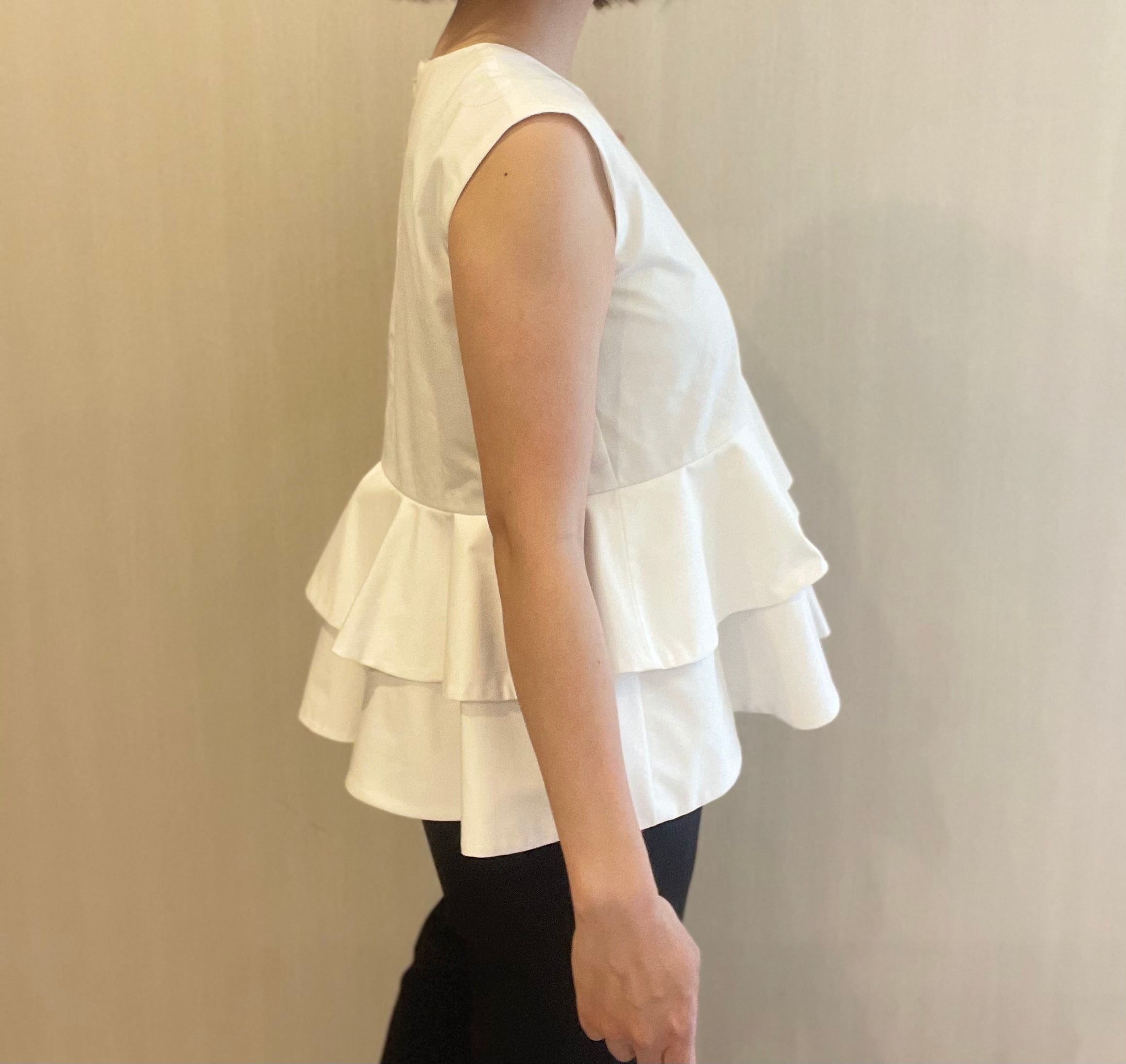 2段の立体フリルが特徴のトップスです。